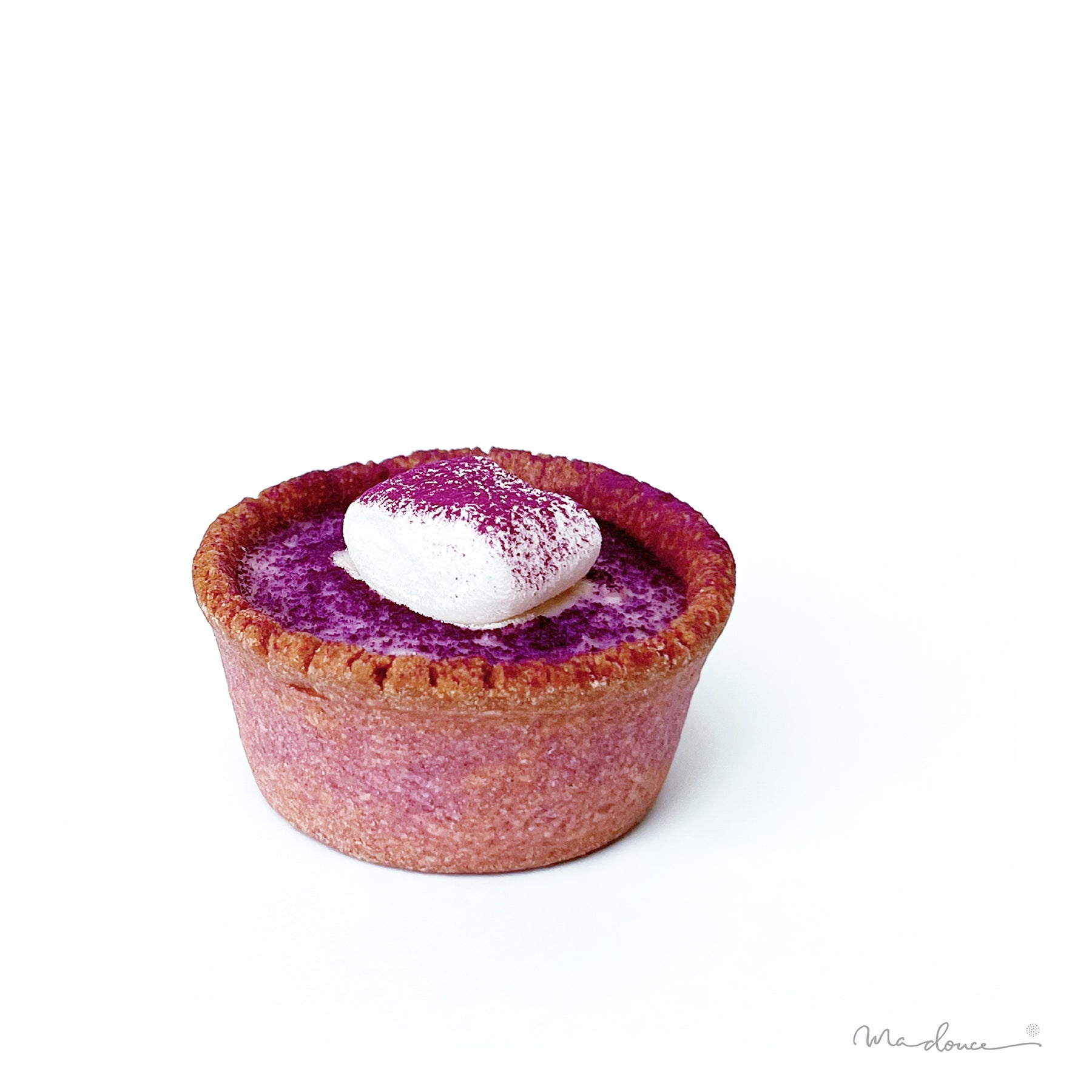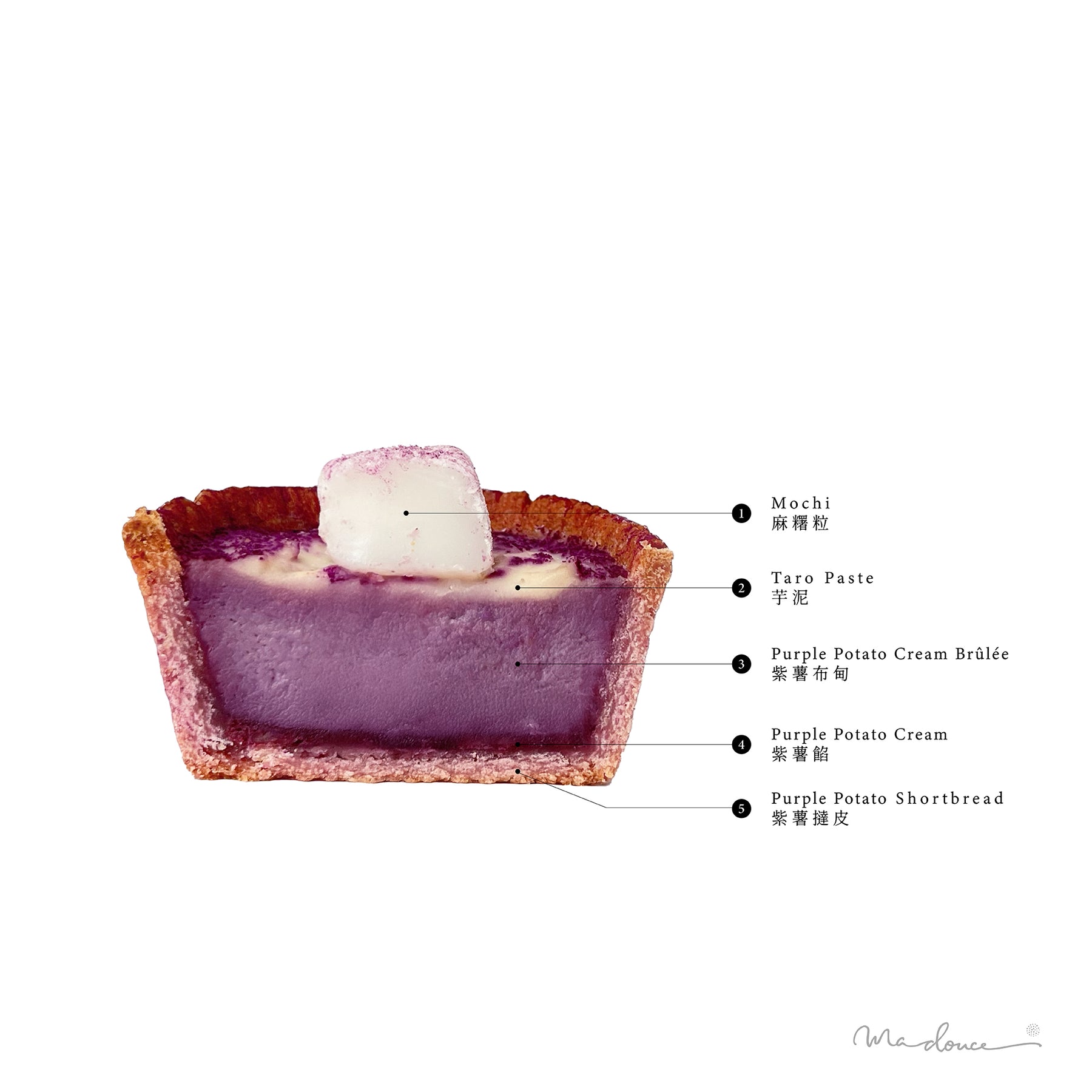 麻糬粒、芋泥、紫薯布甸、紫薯餡、紫薯撻皮